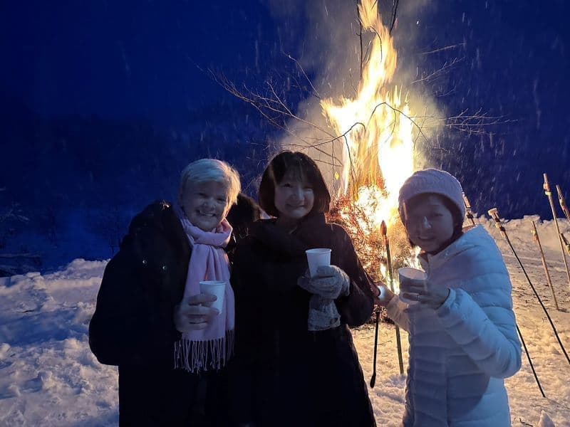 山形置賜地方の郷土食「味噌餅」を、小国町樽口でのさいとう(斎燈、斎塔)焼き(全国的にはどんど焼きとか左義長と呼ばれる小正月の行事)の場で、初めて初めて頂きました。