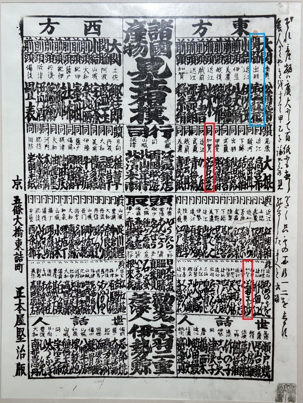 左写真は紅花資料館に展示されていた「諸国産物見立相撲」。