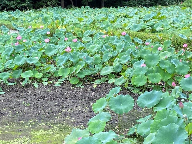 尾花沢から鳴子を往復するルートに選んだ山刀伐峠(なたぎりとうげ)に蓮の花が咲いていました。