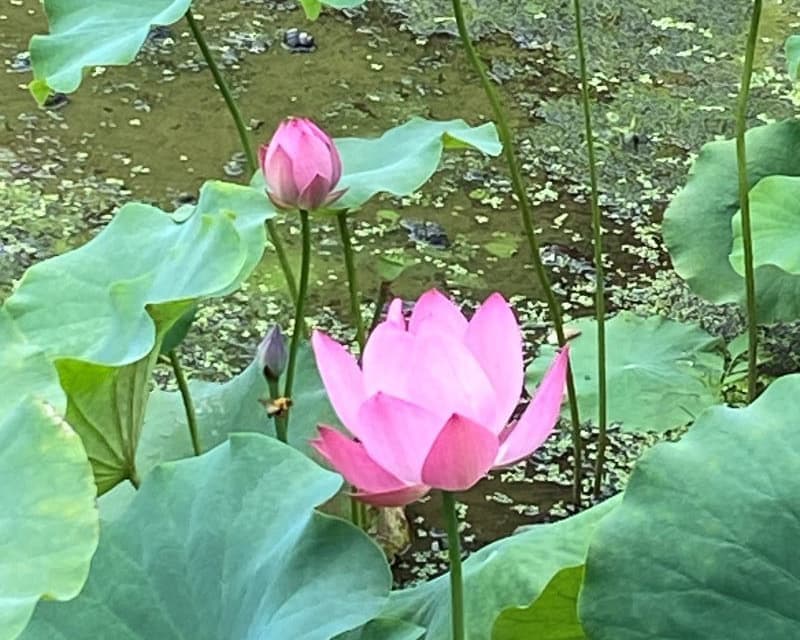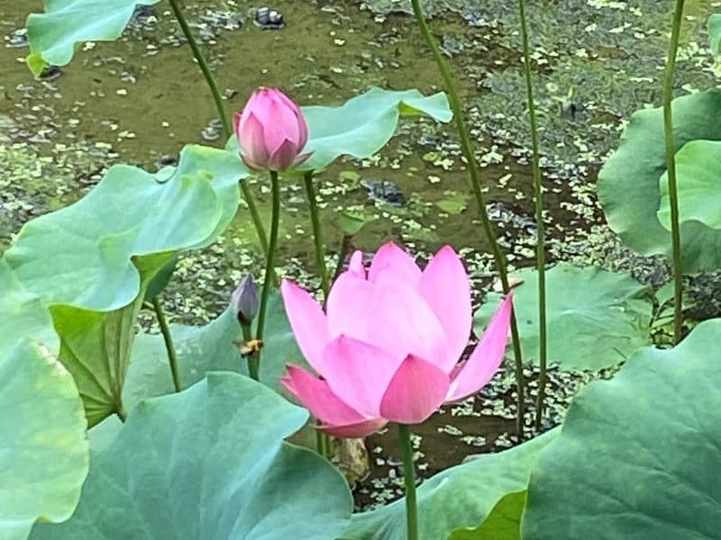 ふと浮かんだのが寅さんの主題歌の一節「どぶに落ちても根のある奴は、いつかは蓮(ハチス)の花と咲く」。そんなハチの巣に似たハチス(蓮)の花が好きですが、偶然に見かけたハチスの花に車をとめてみました。