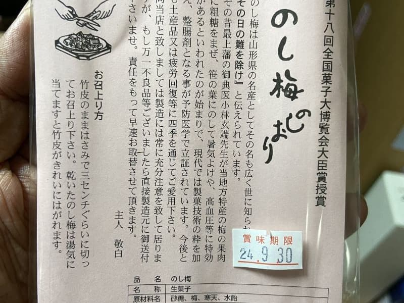のし梅は山形県の名産だそうで,うろこやさんのHPには