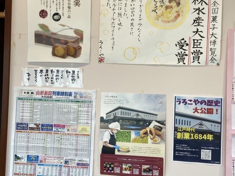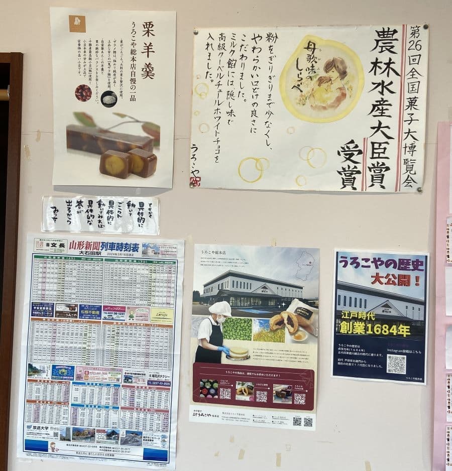 さてそのうろこやさんですが創業340年、同じく同社HPによれば、”初代戸田安右衛門は近江の国の出身で、守り本尊の千手観音像を背に近江商人として行商の末 山形県大石田町にたどり着きました。江戸時代 大石田町は、舟運の要衝であったため当初は船主や荷受け問屋など幅広く事業を展開しておりました。文政13年1830年徳川家斉の時代には、現在のうろこやの原点となっている菓子業をを営むようになります。”とあります。