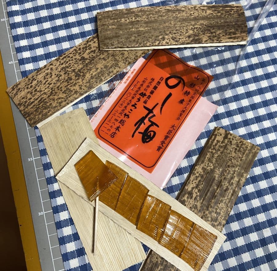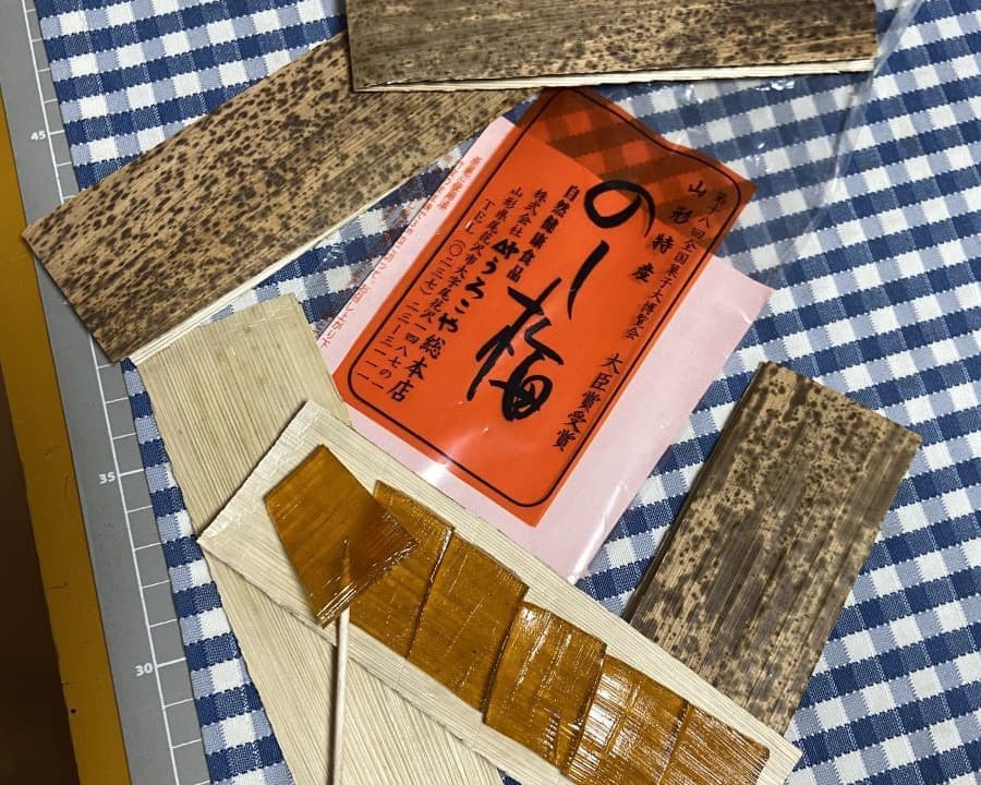 うろこやでは梅をすり潰して寒天に練りこみ、薄くのして乾燥させた伝統菓子としています。第十八回全国菓子大博覧会大臣賞受賞