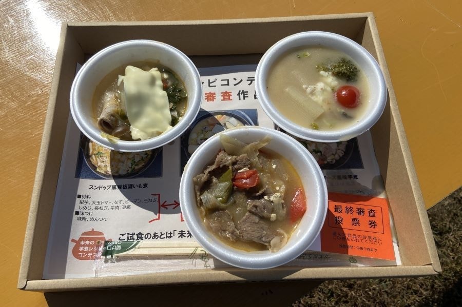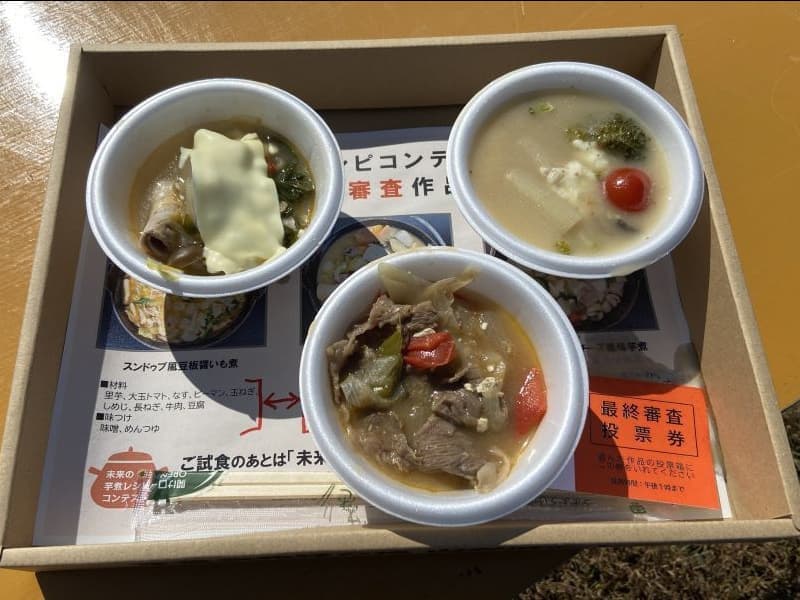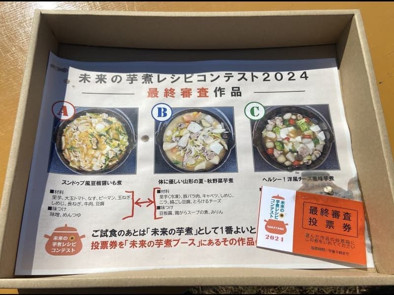 この有料芋煮を無事食した後は、11時からの「未来の芋煮レシピコンテスト最終審査(無料試食会)」のチケット入手に並び、先着200名ぎりぎりセーフでした。