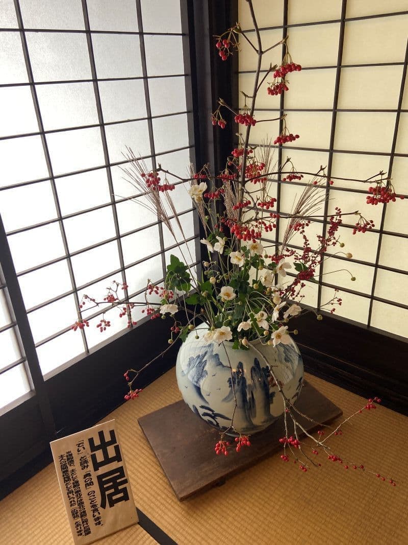 華道師範の当館世話人(青苧復活夢見隊)代表による地元の花などを使った生け花がまた素晴らしいです。これも必見です。